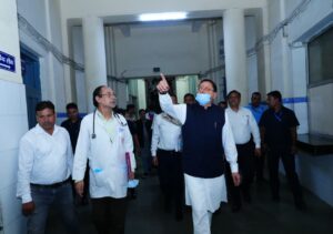 मुख्यमंत्री श्री पुष्कर सिंह धामी ने शनिवार संध्या को राजकीय दून मेडिकल कॉलेज चिकित्सालय का औचक निरीक्षण कर अस्पताल में उपलब्ध स्वास्थ्य सेवाओं, उपचार की गुणवत्ता तथा व्यवस्थाओं का गहन जायजा लिया।