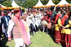 मुख्यमंत्री  धामी की मौजूदगी में जौनसारी कलाकारों का हारूल नृत्य और कुमाऊंनी होल्यारों के गीतों ने बांधा समां